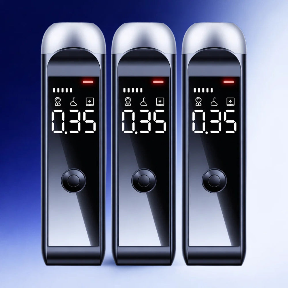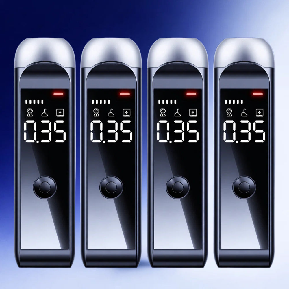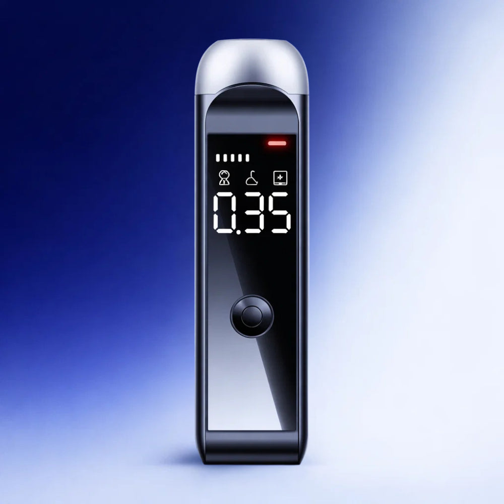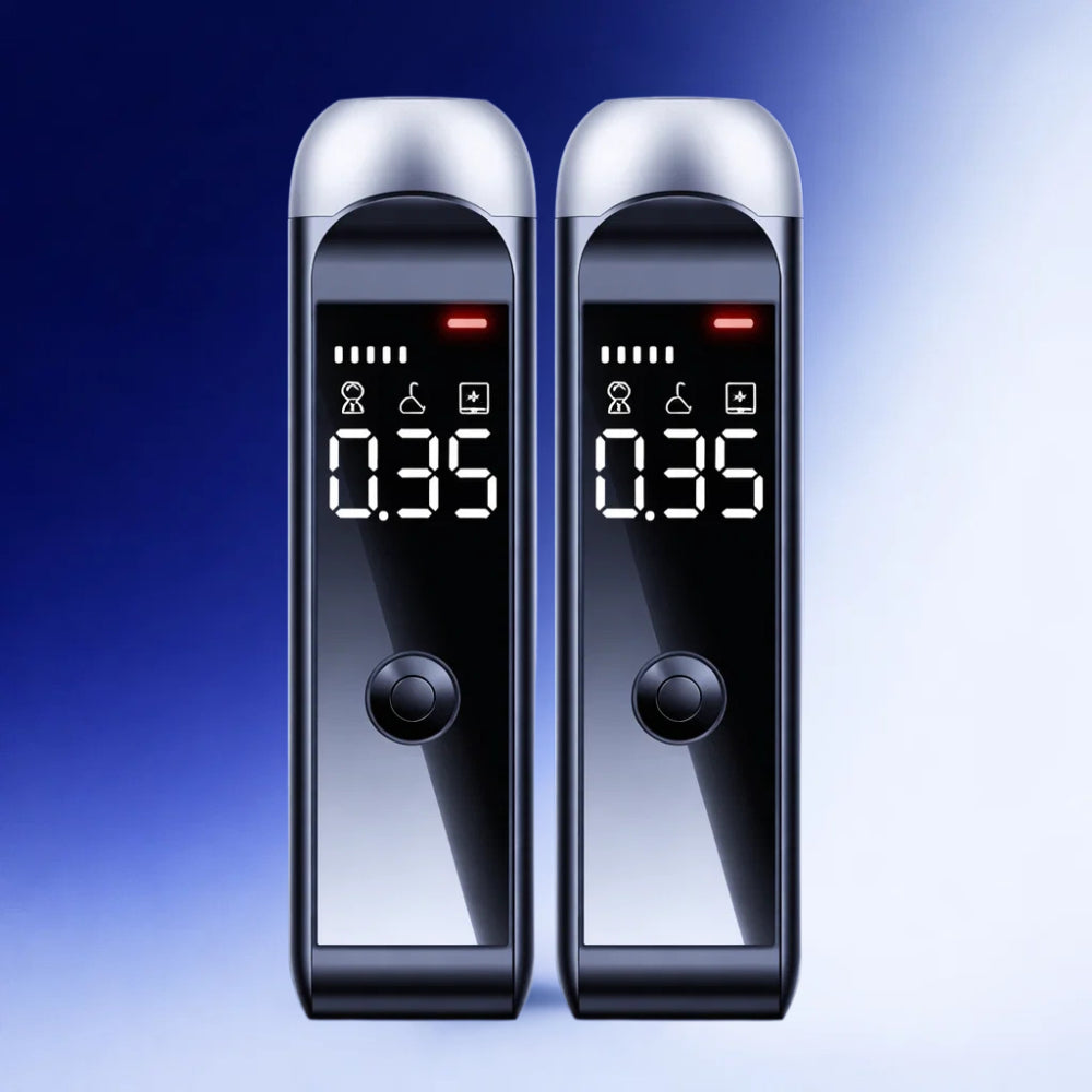 BreatheSafe™ is een compacte alcoholtester die je in seconden duidelijkheid geeft voordat je de auto instapt. Met één simpele ademtest zie je direct je promillage op het heldere LCD-display—zodat je niet hoeft te gokken, onnodige risico’s vermijdt en met een gerust gevoel een betere keuze kunt maken.